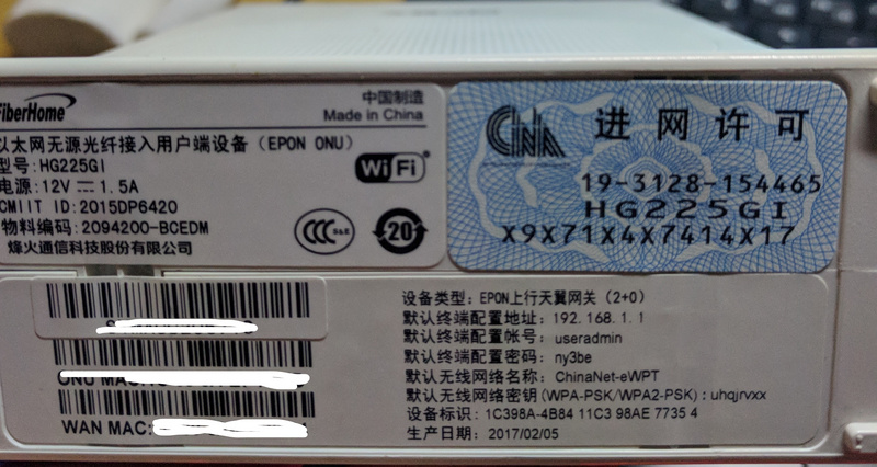 第一步:进入192.168.1.1输入普通管理密码,这个密码在猫的下面有,像这样: