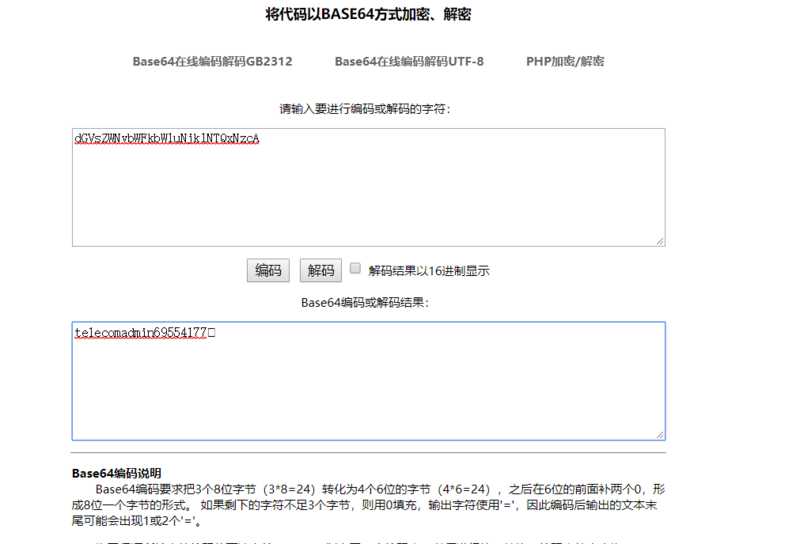 你以为这个就是超级管理密码了?no no no,不可能这么简单的,你还需要base64解密下才能得到真正的密码: